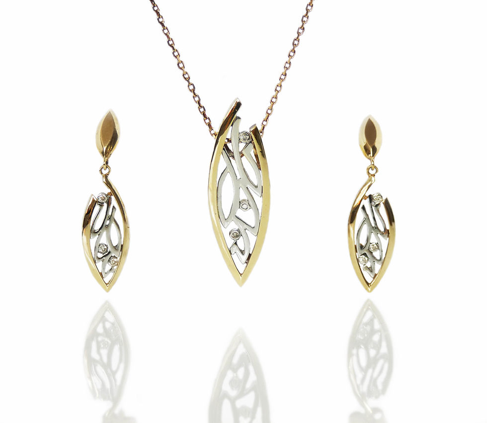 9ct Yellow & White Gold Leaf Design Diamond Set