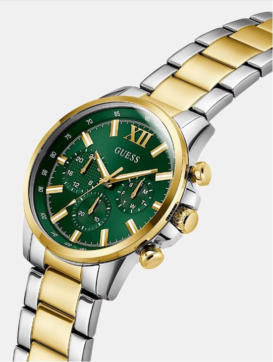 Guess Gents Jet 2 Tone Steel Multi-Function Watch with Green Dial