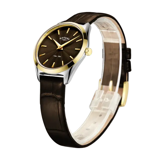 ROTARY LADIES ULTRA SLIM LEATHER STRAP WATCH - LS08011/49